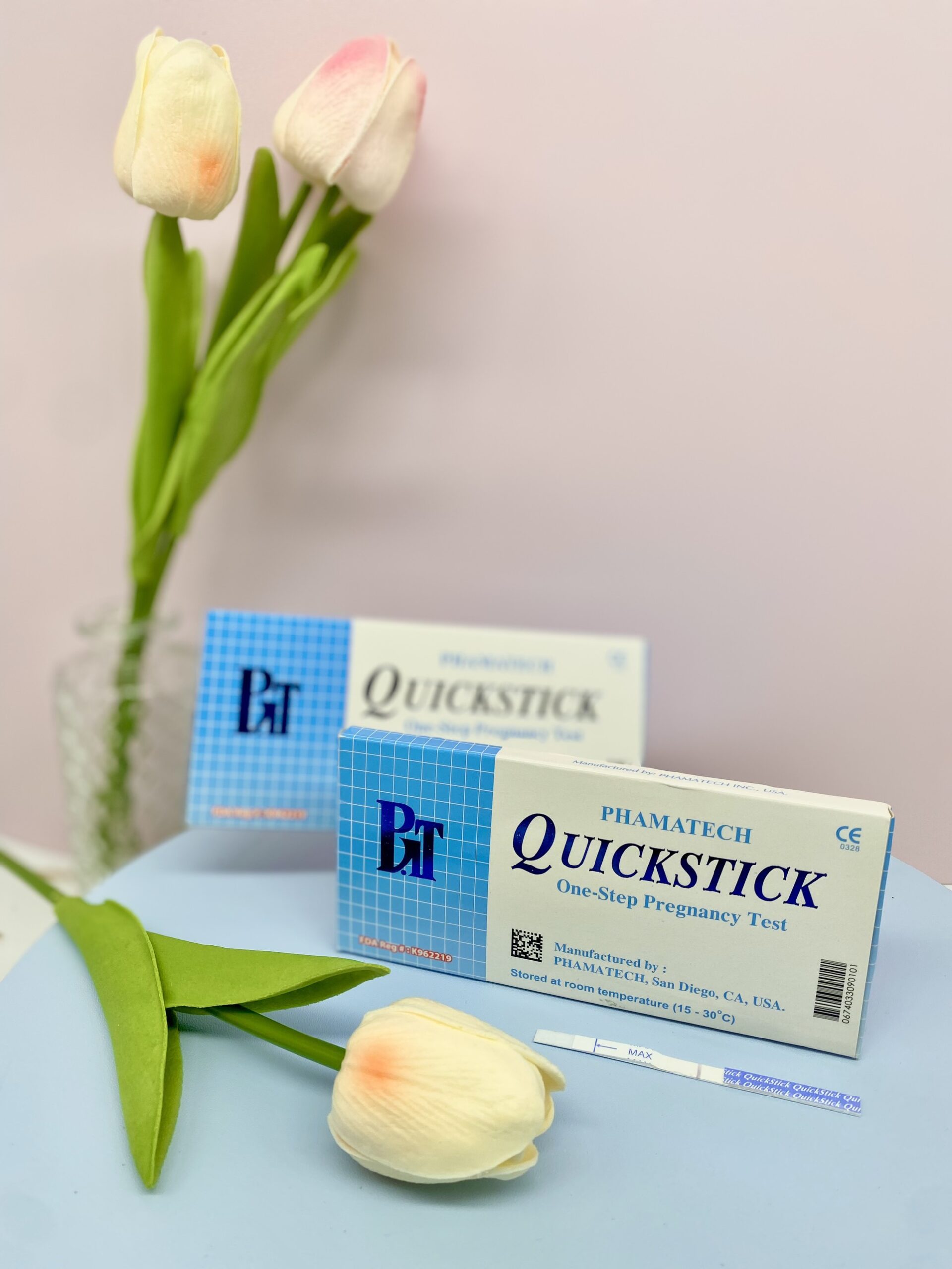 QuickStick là sản phẩm thử thai đầu tiên trên thị trường Việt Nam. Đây là sản phẩm được hãng PHAMATECH sản xuất tại Hoa Kỳ – đạt tiêu chuẩn FDA, do Công ty TNHH Thương Mại Thành Kim Sơn Phamatech nhập khẩu và độc quyền phân phối kể từ tháng 1 năm 2023 ( Công ty TNHH TM Hùng Phương đảm nhận nhập khẩu và phân phối từ 1993 – 2022).